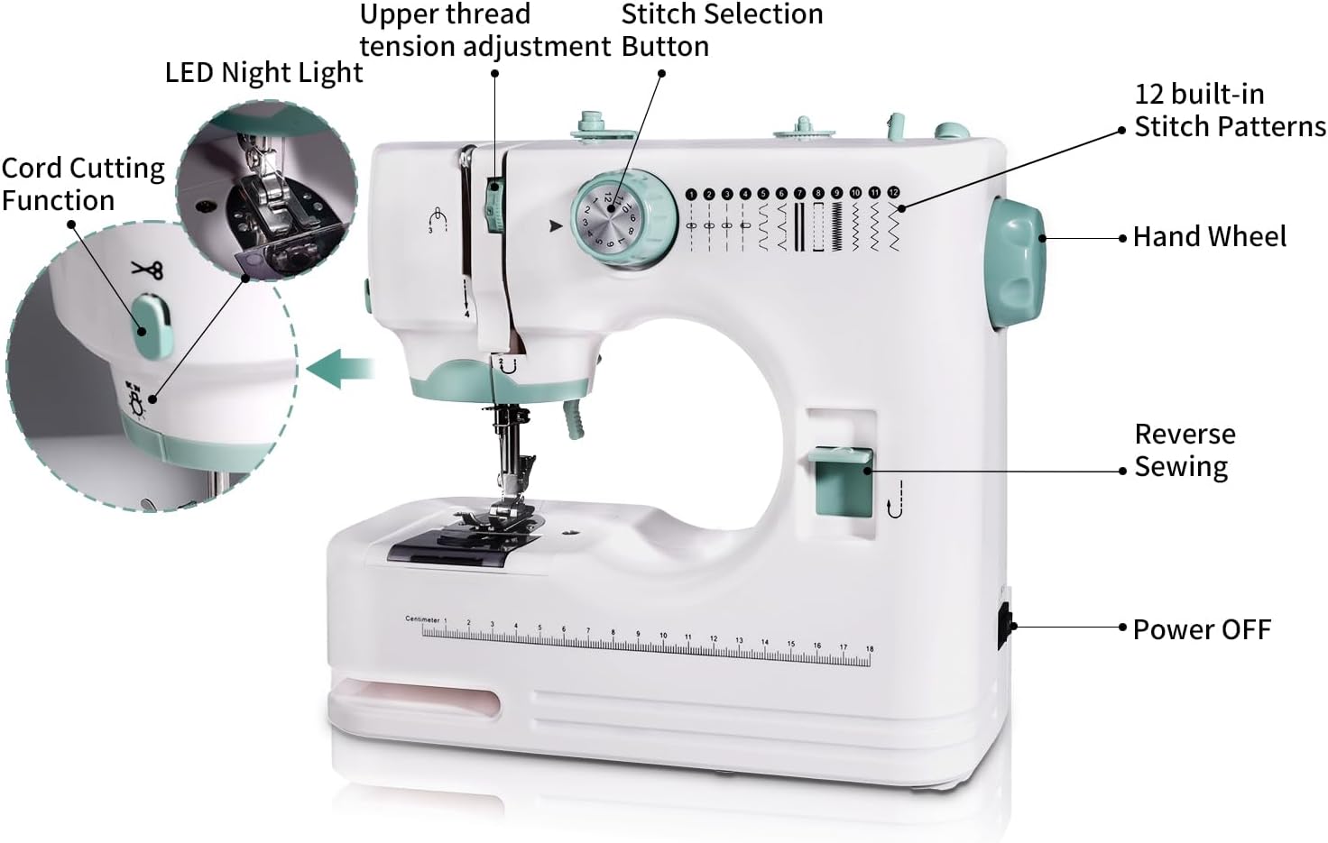 – **12 Built-in Stitches:** Effortlessly tackle a variety of sewing projects with 12 built-in stitch patterns, including straight, zigzag, and decorative stitches. Whether you’re hemming pants or crafting intricate designs, this machine has you covered.